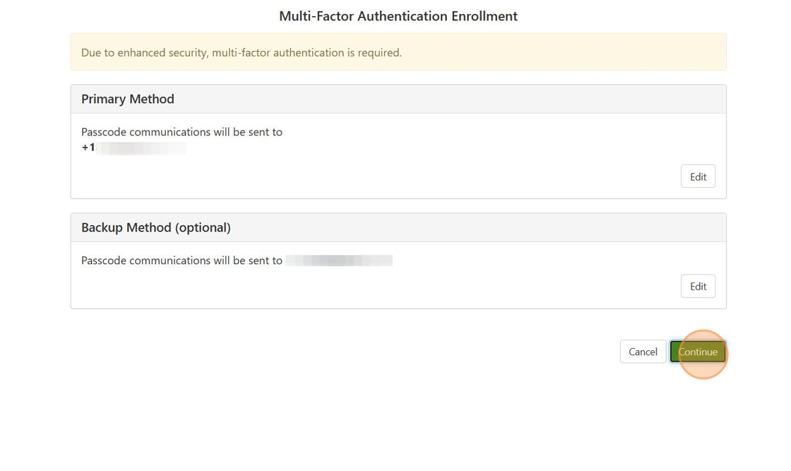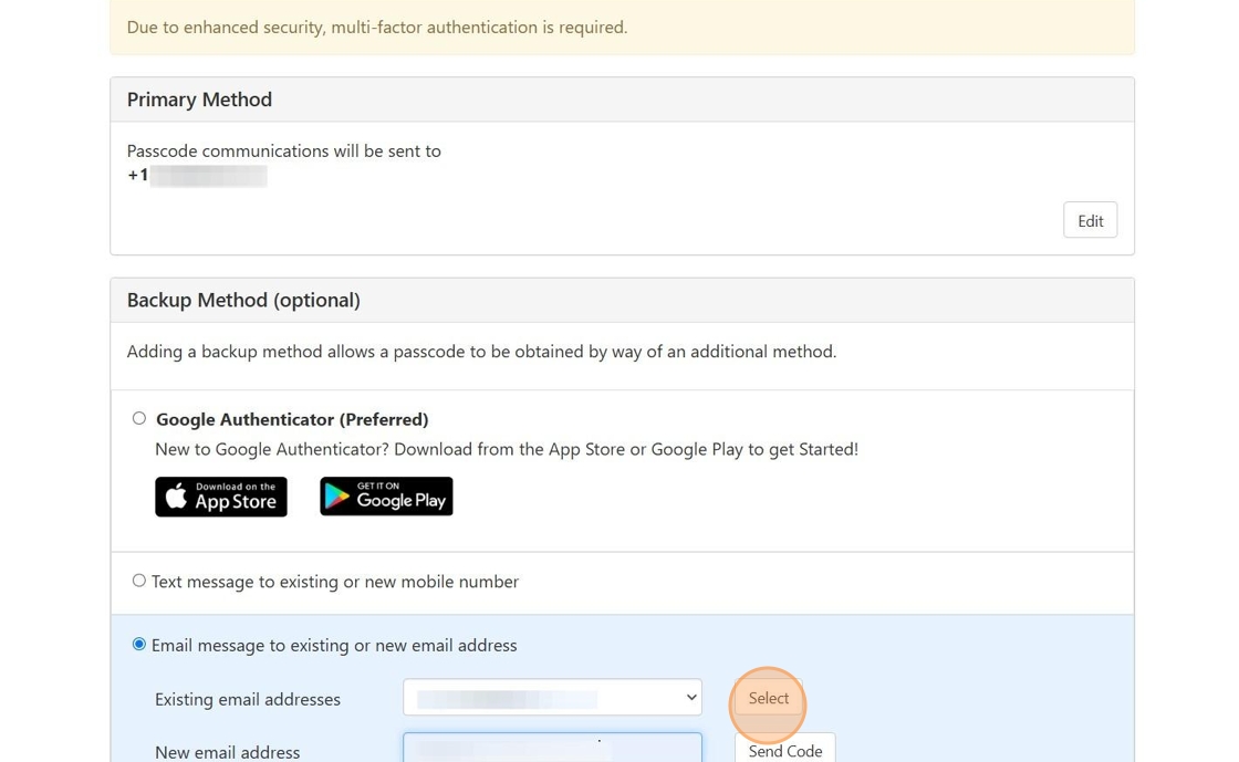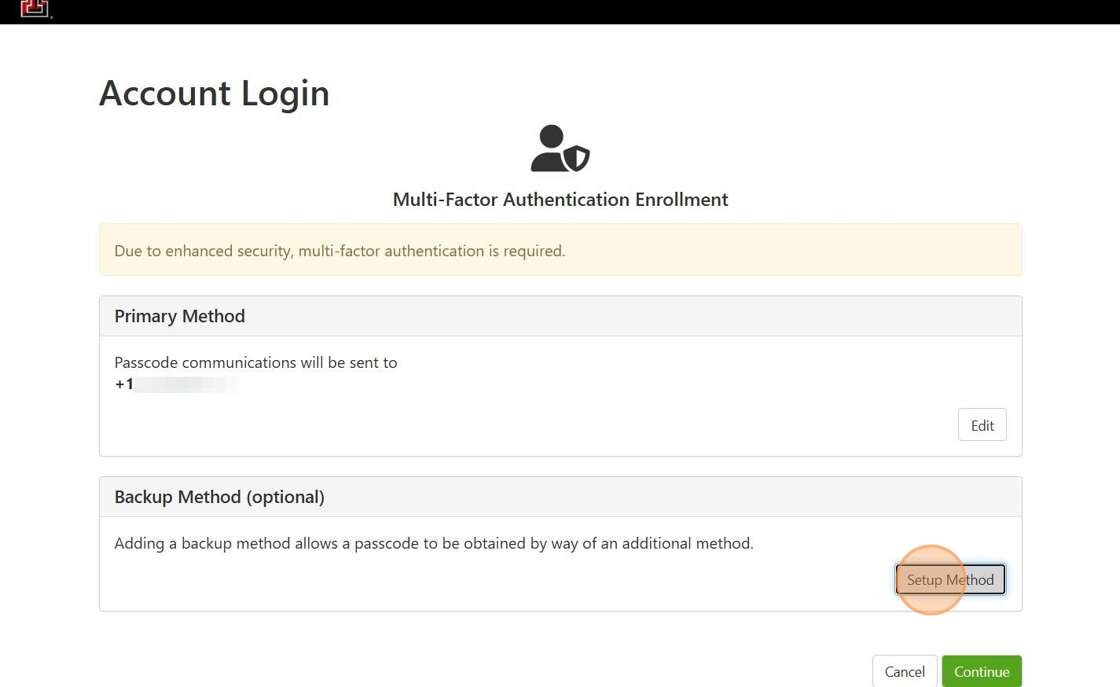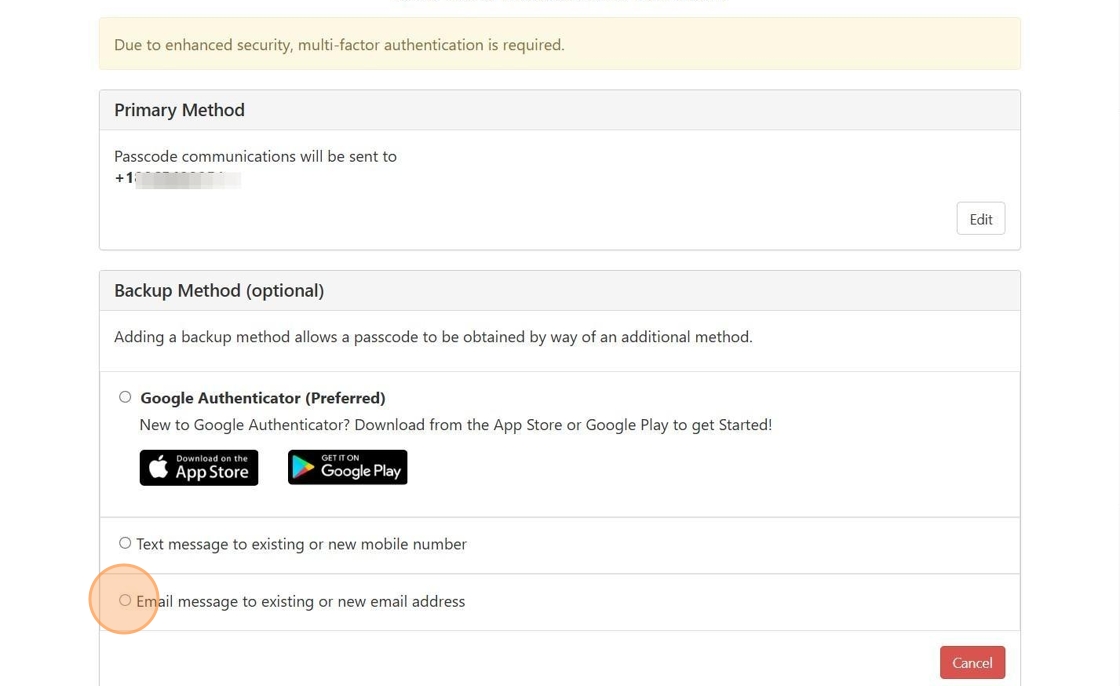 3. Select which Primary Method you would like to utilize for your Multi-Factor Authentication Enrollment.