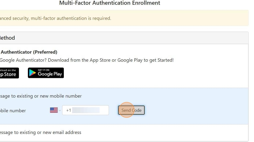 5. Select "Send Code".
