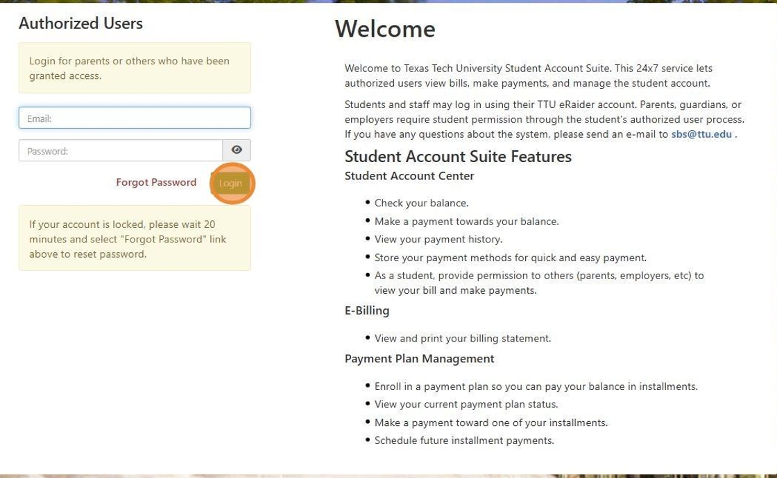 2. Enter in your email and password that is linked to your authorized user account and select "Login".